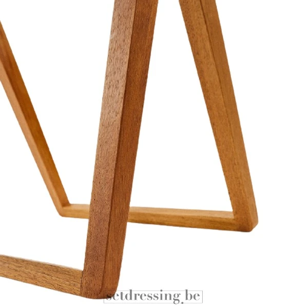 Solid acacia wood towel rack, 90 cm high. This foldable rack is ideal for hanging towels or blankets and adds a warm, natural touch to any interior. Its collapsible design makes it easy to store when not in use. Perfect for use in bathrooms, bedrooms, or as a styling piece on set designs. The solid wood ensures stability and durability.