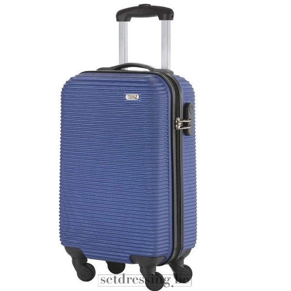 This is a purple compact carry-on suitcase with four wheels and an extendable handle. The suitcase is made of hard plastic with a ribbed vertical pattern on the exterior. The handle is silver-colored metal with a black grip. The four swivel wheels ensure easy maneuverability. This suitcase is suitable for travel, airport, or vacation scenes and serves as a modern and functional prop for various productions.