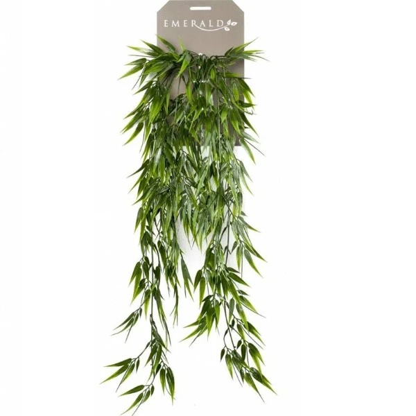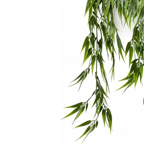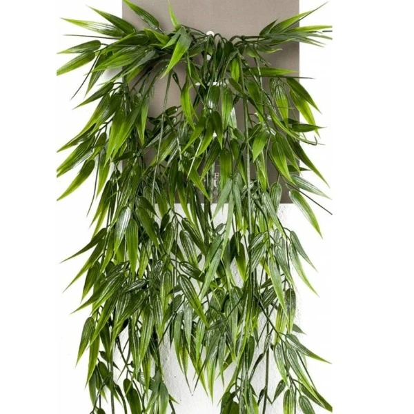This is an artificial hanging plant. The plant features long, thin, green leaves that hang downwards. The leaves are made of synthetic material. The item is designed to be mounted on a wall or surface. This decorative piece is suitable for interior sets, events, and photoshoots. It requires no maintenance and adds a natural, hanging element to the space.