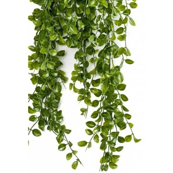 This is an artificial hanging plant, specifically Ficus Pumila, with small, green leaves. The leaves are made of synthetic material. The product is designed to be mounted on a wall or surface. This decorative piece is suitable for interior sets, events, and photoshoots. It requires no maintenance and adds a natural, hanging element to the space.