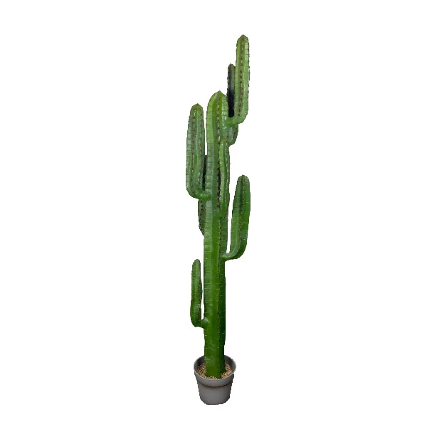 Deze kunstmatige cactussen zijn een realistische en onderhoudsvrije toevoeging aan elke set of evenement. Ze zijn vervaardigd uit hoogwaardig kunststof en textiel, wat zorgt voor een duurzaam en levensecht uiterlijk. De cactussen hebben een levendige groene kleur en staan stevig in een neutrale grijze pot. Perfect voor woestijn-thema's, Westerse decors, of een vleugje natuur in stedelijke omgevingen. Beschikbaar in verschillende hoogtes, deze specifieke variant is middelhoog en heeft meerdere armen die omhoog reiken, wat zorgt voor een natuurlijke en organische vorm.