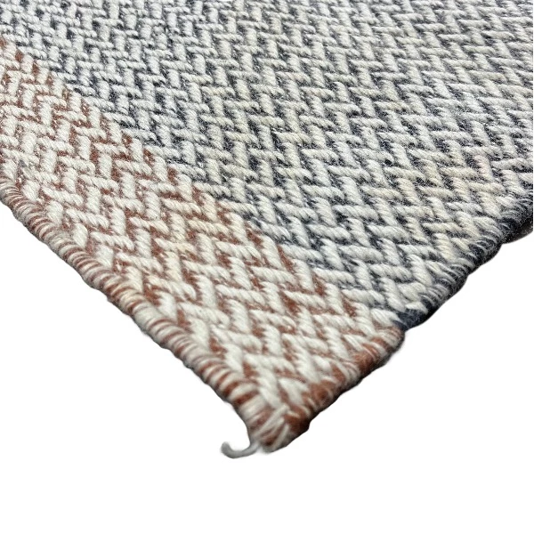 Dit is een rechthoekig, geweven vloerkleed met een mix van lichte en donkere draden, wat een gemêleerd effect creëert. Het kleed heeft een platte, strakke structuur en is gemaakt van een natuurlijk materiaal zoals katoen of wol. De uiteinden zijn afgewerkt met korte, gevlochten franjes aan de twee smalle zijden, wat bijdraagt aan de ambachtelijke, minimalistische uitstraling. Dit kleed is ideaal voor het toevoegen van textuur aan een scène, en past perfect in een modern, Scandinavisch of bohemien interieur. Het object is geschikt als rekwisiet voor fotografie, film en evenementen.