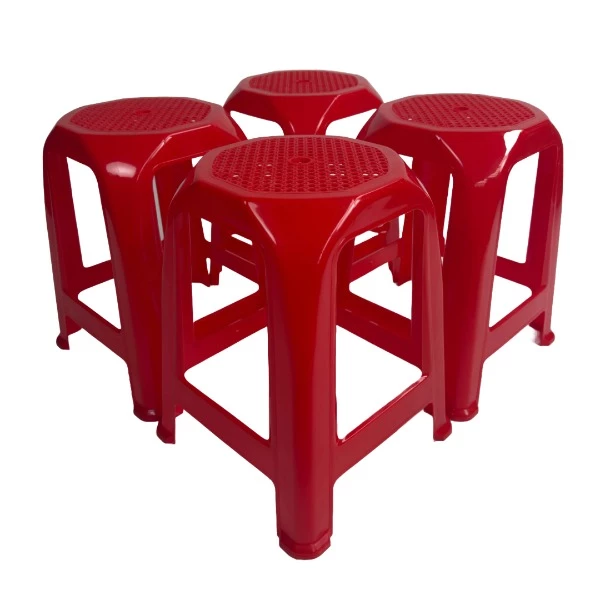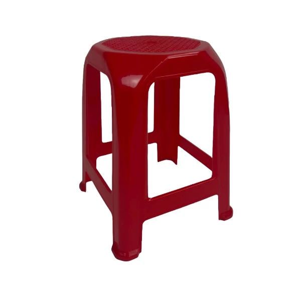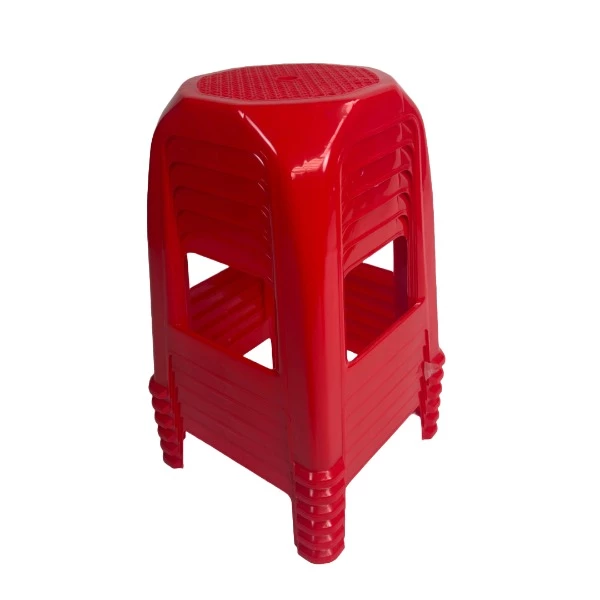 Deze rode plastic kruk is een eenvoudig en functioneel zitmeubel. De kruk is gemaakt van duurzaam plastic en heeft een zeshoekige zitting met een subtiel patroon voor extra grip. De poten zijn stevig en zorgen voor stabiliteit. Ideaal voor gebruik in diverse setdesigns, van alledaagse scènes tot meer gestileerde producties. De heldere rode kleur voegt een opvallend element toe aan elke set.