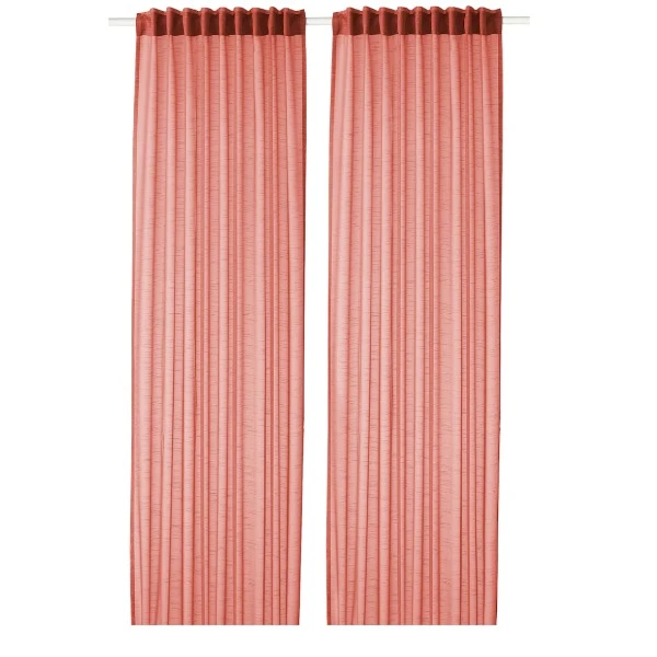 Dit zijn twee bruin rode gordijnen, elk met een afmeting van 145x300cm. Ze zijn gemaakt van 100% polyester met een semi-transparante afwerking. De gordijnen zijn ontworpen voor eenvoudige ophanging en hebben een subtiel geweven textuur. Ideaal voor het creëren van een zachte, luchtige sfeer of voor het filteren van licht in diverse omgevingen. Hun unieke kleur voegt een zachte en verfijnde toets toe. Perfect voor filmsets, fotoshoots of evenementen die een lichte, decoratieve draperieoplossing vereisen.